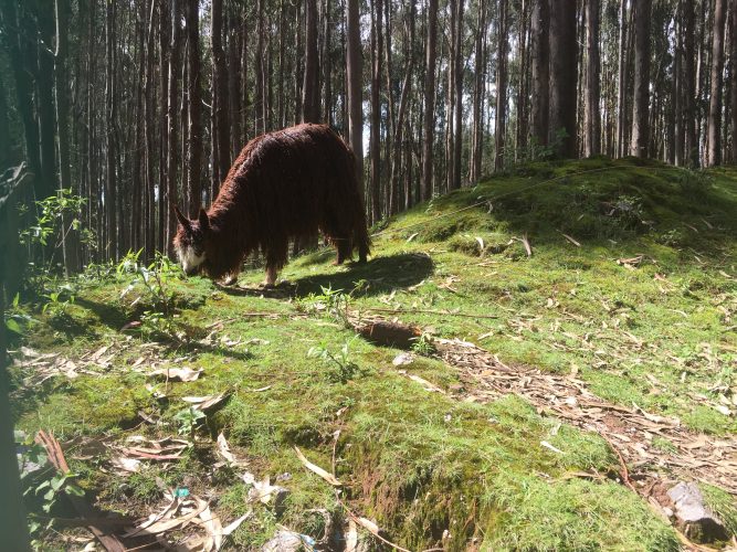 Les alentours du Cristo Blanco avec un petit copain au bout d’une corde qui broutait dans la forêt…