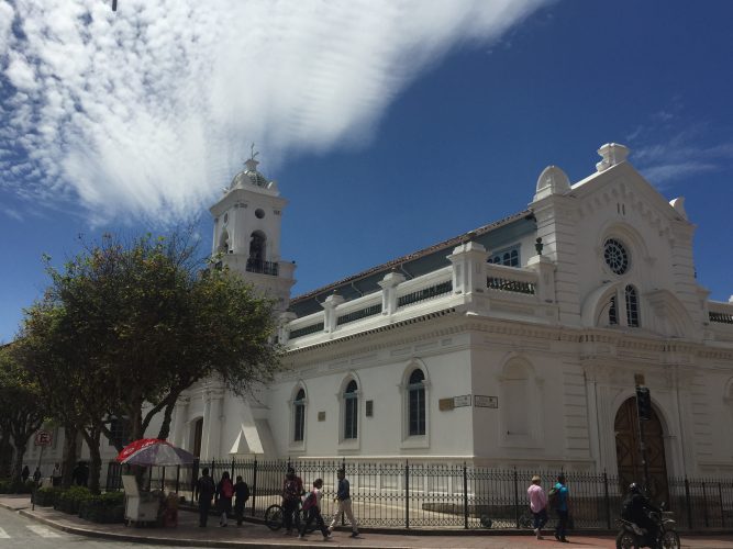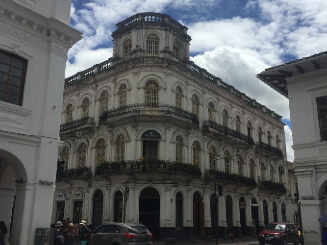 Ce qui m’a impressionnée dans cette ville, c’est le nombre incroyable d’églises, plus belles les unes que les autres! Lors du City tour que j’ai effectué, il me semble même avoir entendu le chiffre de 52 ! Et je n’en suis pas étonnée du tout car les équatoriens sont des personnes très religieuses. Beaucoup de nouveaux bâtiments sont construits en briques de terre cuite, mais les anciens sont plutôt de style colonial. Magnifique !