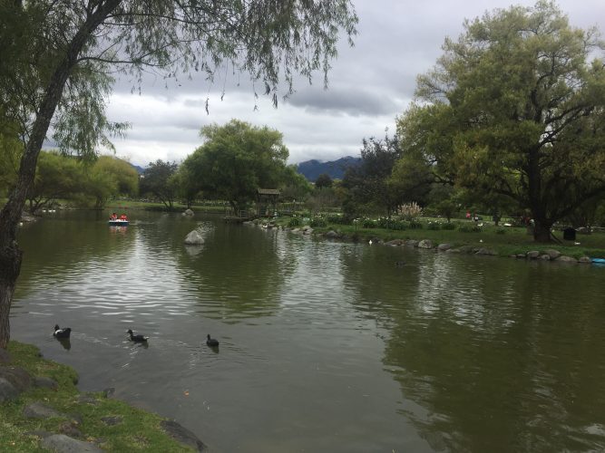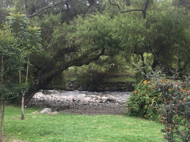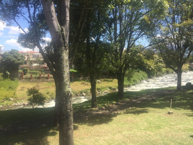 La veille de mon départ, je suis allée, avec Maria et une partie de sa famille, me promener dans deux magnifiques parcs de la ville, dont le parc Paraiso, où, notamment, se réunissent les rivières Tomebamba et Yanuncay. La grandeur/grosseur des arbres m’a fascinée!… Bon, pour changer il ne faisait pas très beau et, surtout, pas très chaud. Mais les petits-enfants de Maria, eux, se sont bien amusés et c’est ce qui compte!