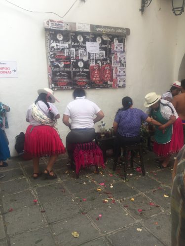 Pour m’y rendre, soit depuis Tarqui – village où je loge et travaille, qui se situe à environ 30′ -, il y a plusieurs possibilités, dont la moins onéreuse est d’aller à pied (30′) jusqu’à l’avenue principale, puis prendre un colectivo pour 0.30$. Le problème, c’est que le terminus est à la « Feria Libre », quartier qui se trouve à 45′ à pied du centre de Cuenca. Donc, ou vous devez prendre le taxi ou un bus, mais pour ce dernier vous devez avoir une carte. La solution la plus onéreuse, mais bien plus rapide, est de prendre un taxi mixto de Tarqui à Cuenca, pour le prix de 10$, 12 ou 15$ pour les profiteurs parce que vous êtes un « gringo ».