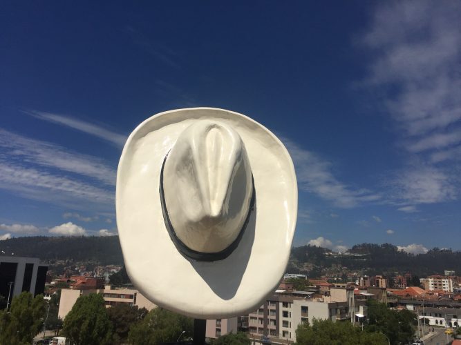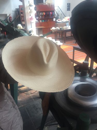 Capitale des chapeaux de paille Panama, la visite du musée du Sombrero est très intéressante. La fabrique Homero Ortega, la plus célèbre de la ville, exporte ses chapeaux dans le monde entier. Le prix minimum d’un Panama est de 30$ et peut aller jusqu’à 1’000$. Pour ce prix vous aurez un chapeau au tressage très fin, offrant une protection optimale contre les rayons du soleil. Six mois sont nécessaires pour fabriquer un tel chapeau. Donc, le prix n’est pas si élevé que cela si l’on tient compte du temps de travail. Pour mon compte j’en ai acheté deux, et du coup j’ai eu droit à deux bons pour un café sur la terrasse-mirador du musée. Comme il faisait beau et chaud, que demander de mieux ? Actuellement ils dorment dans un carton, fourni spécialement pour les voyages dans les bagages, par avion, et, je dirais qu’ils ont plus ou moins bien supporté les vols de Cuenca à Bogota et de Bogota à Córdoba, soit quatre vols en tout, et j’espère qu’il en sera de même pour les suivants…