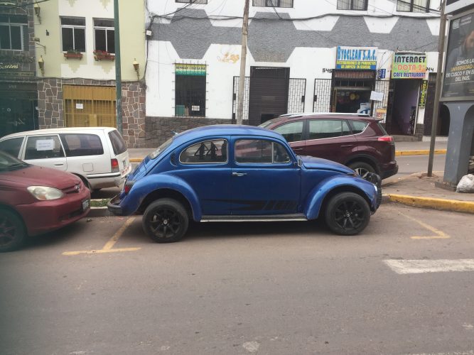 Alors que nous n’en voyons pour ainsi dire plus en Suisse, à Cusco on peut les compter par dizaines, de toutes les couleurs, et j’en ai encore tout plein dans ma bibliothèque d’images, mais je vais pas exagérer non plus. J’adore ces voitures, cela me rappelle une époque, où une amie en avait une, et lorsque son copain la conduisait (à grande vitesse), son but était de pouvoir faire un contour sur deux roues, mais il n’y est jamais arrivé, et nous, assis sur les sièges arrières on riait comme des fous, on était vraiment inconscients…