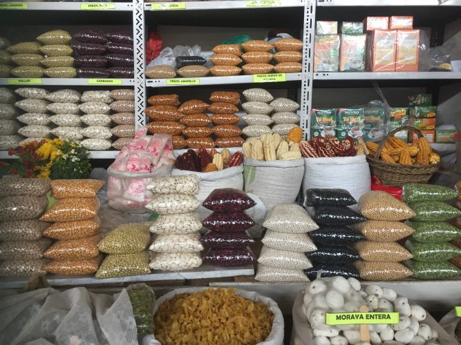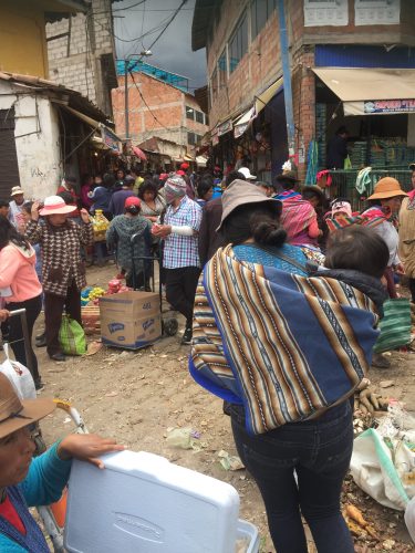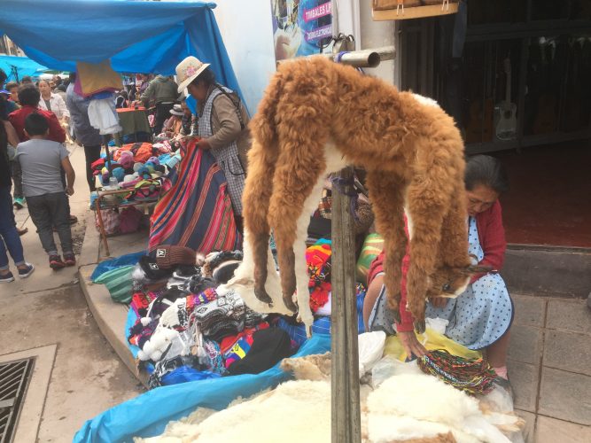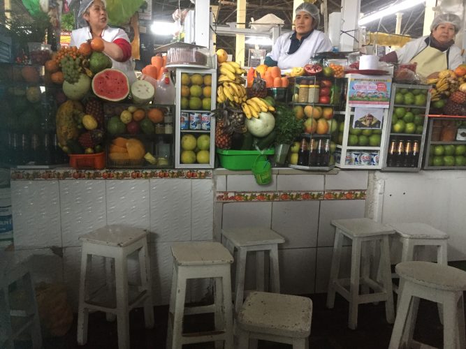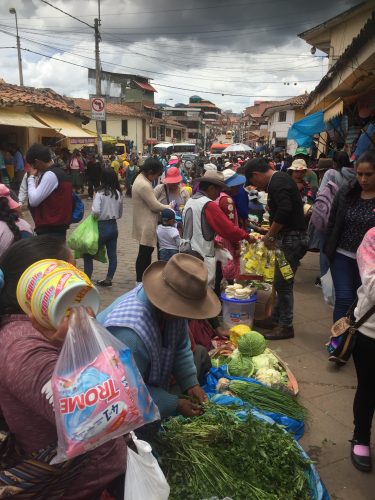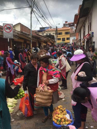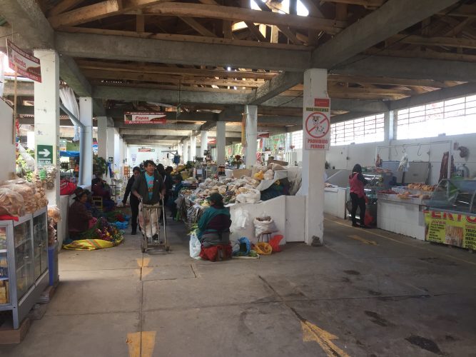 Alors ce marché là, au début de mon séjour à Cusco, j’avais dit que je n’y mettrais pas les pieds car il me semblait sale. Mais un jour, j’y suis allée avec Afef, une pote volontaire, pour y faire des photos, et depuis j’y vais régulièrement pour me ravitailler car il n’est pas sale du tout. Juste que, à cet endroit, il faut faire très attention à ses affaires, car il y a de nombreux vols et ce sont d’ailleurs les commerçants qui nous y rendent attentifs.
