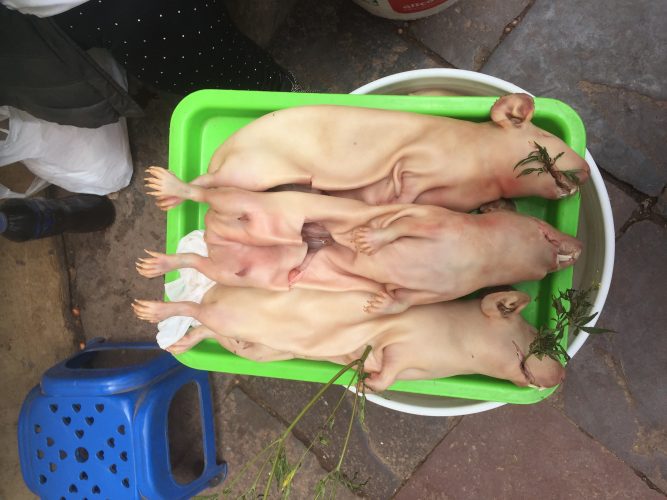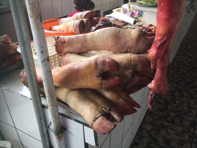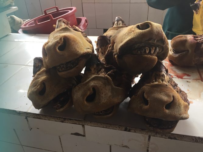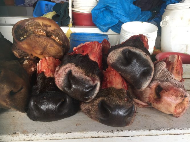 … et vous n’avez pas l’odeur!… Ma pote Afef m’a bénie car elle n’était jamais entrée au marché du côté boucherie, mais j’ai aussi cru que j’allais vomir…