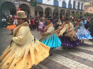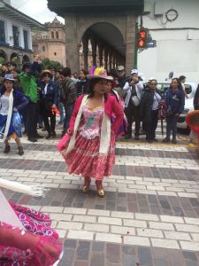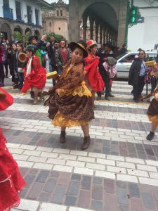 Ce qui signifie Fête de la Vierge de la Chandeleur. Quel bonheur de m’être trouvée, le dimanche 3 février, au bon endroit au bon moment, soit sur la Plaza San Francisco à Cusco, pour assister à ce merveilleux spectacle haut en couleurs. Tout d’abord sur la place, puis en cortège.