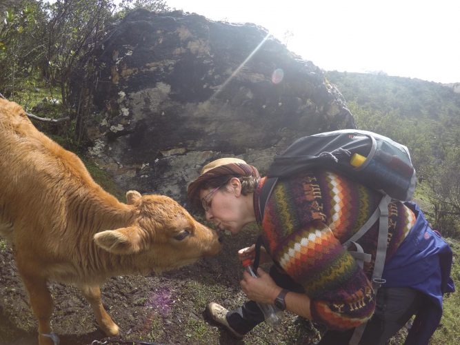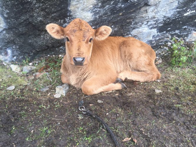 Puis, sur notre chemin, nous avons fait une jolie rencontre, un petit veau qui se cachait sous un rocher.
