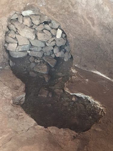 Les grandes terrasses que l’on peut y voir, étaient des terrasses agricoles, irriguées par un réseaux de canaux d’eau alimentés par une source naturelle.