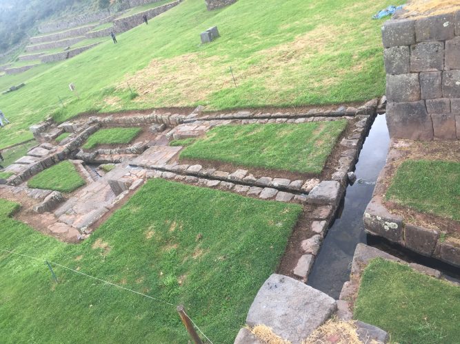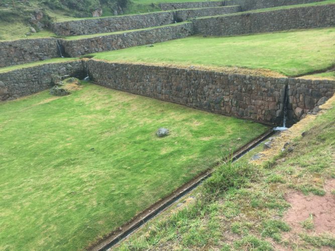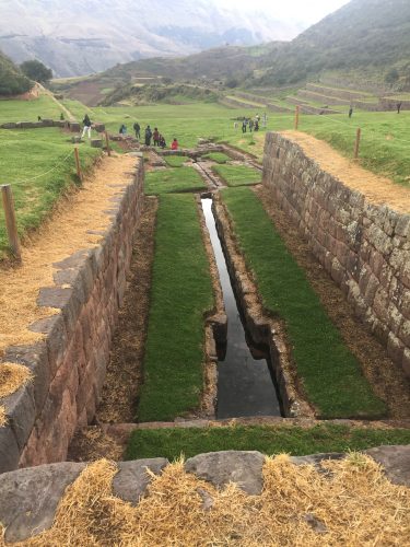 J’ai eu beaucoup de chance d’aller visiter Tipón à cette époque de l’année, car, tout est magnifiquement vert, ou presque, car, les bordures sont jaunes (traitées au roundup ?) mais dans un mois, tout sera jaune étant donné que la saison des pluies est terminée.