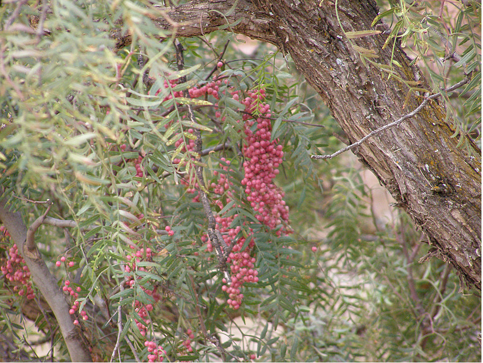 A l’endroit où nous avons parqué la voiture, j’ai remarqué des arbres avec des espèces de fruits un peu rose. Renseignements pris, ce sont des poivriers roses des andes.