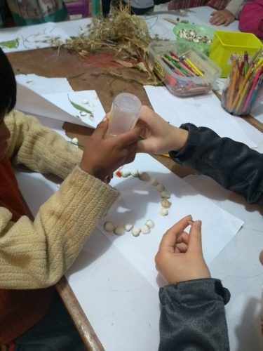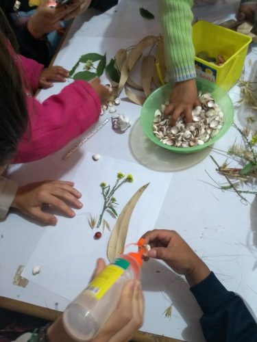 Super activité où les enfants ont pris énormément de plaisir. Bon, pour être franche, les coquillages nous ne les avons pas trouvés à « La Pampa », mais il y en avait à l’ONG et les enfants avaient envie de les utiliser, alors…