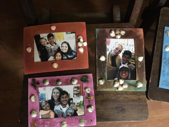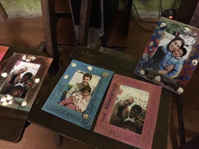 Activité organisée par mes soins. Cette fois j’ai choisi un cadre photos comme bricolage. J’ai donc acheté du carton, que j’ai découpé, avec l’aide d’Anna, une jeune volontaire française, ainsi que divers décors. Pour les photos, c’est Eduardo qui les a faites, le jour même, et les jours suivants les enfants sont partis à la maison, avec leur cadre terminé.